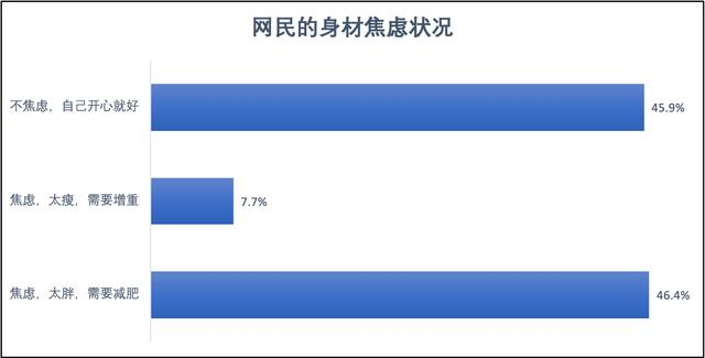 近年来,年轻人的体重焦虑、颜值焦虑和健康焦虑正逐渐提升。根据陌陌于5月11日世界防治肥胖日所发布的《2021年网民身材焦虑报告》显示,约有46.4%的网民感到身材焦虑,认为自己太胖,其中有身材焦虑的女性网友比例更高,占比54.3%。