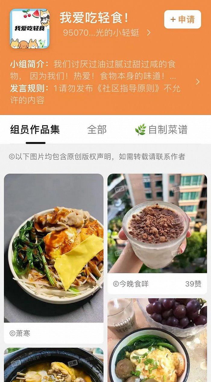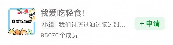 豆瓣“我爱吃轻食!”小组有多达95070个成员。小组成员们不仅分享着各种菜谱与餐厅,还纷纷晒出自己的作品集。