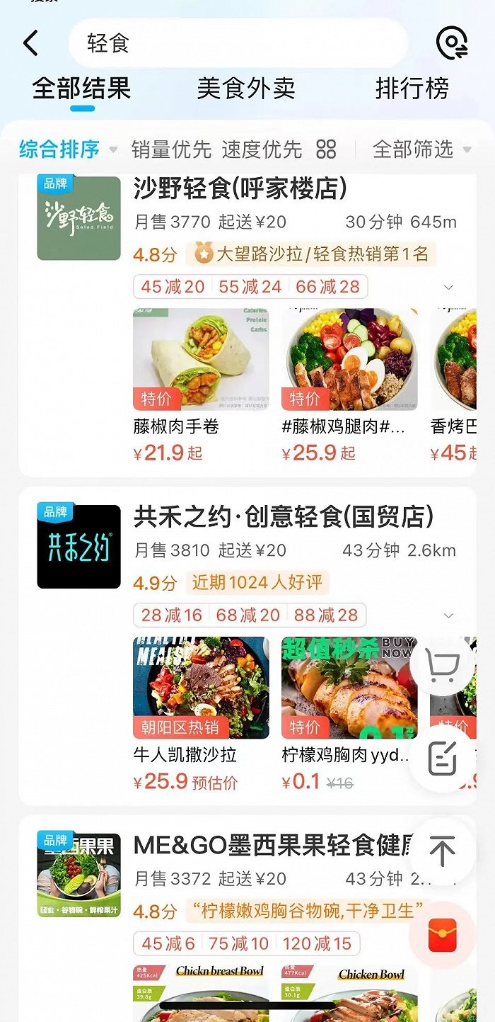 在外卖软件中搜索“轻食”,月销量破千的餐厅不在少数