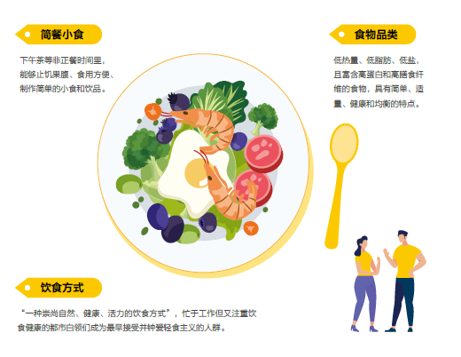 在轻食爱好者眼中,轻食主义代表了一种均衡、自然且健康的饮食习惯。据中国营养学会发布的《2020年中国人群轻食消费行为白皮书》(以下简称为《白皮书》)中的定义,轻食是一种新型的饮食方式,以食物组成丰富,用量少、新鲜和能量低为其主要特点,是人们在一段时间内的选择性餐食。