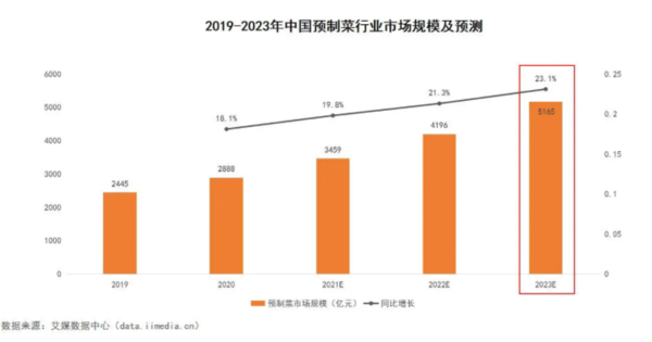 《2022-2023年中国预制菜产业发展趋势及商业布局分析报告》的数据显示,2021年中国预制菜市场规模为3459亿元,同比增长19.8%,预计未来中国预制菜市场保持较高的增长速度,2026年预制菜市场规模将达到1.07万亿。