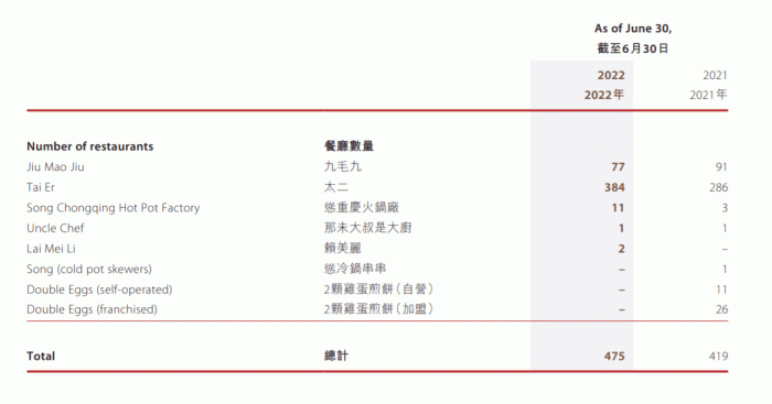 部分“副牌”也正被丢弃。今年6月,公司出售2颗鸡蛋煎饼品牌后,7间2颗鸡蛋煎饼自营餐厅及15间2颗鸡蛋煎饼加盟餐厅已从公司餐厅网络排除。