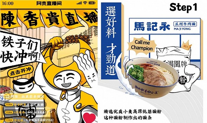 以张拉拉、马记永、陈香贵这三家新式兰州拉面馆为例。张拉拉打出“五代传承”的广告语,通过门店纯木色的装修风格突出品牌匠心,以手撕牛肉为卖点;马记永以兰州牛肉面创始人马耀山为品牌背书,打出“不负中华牛肉面”的口号;陈香贵在门店内布置了“梦回兰州”“地道兰州味、飘香两百年”等标语,以“牛股清汤”为卖点,并推出IP形象“阿贵”,通过人格化运营,与消费者互动。